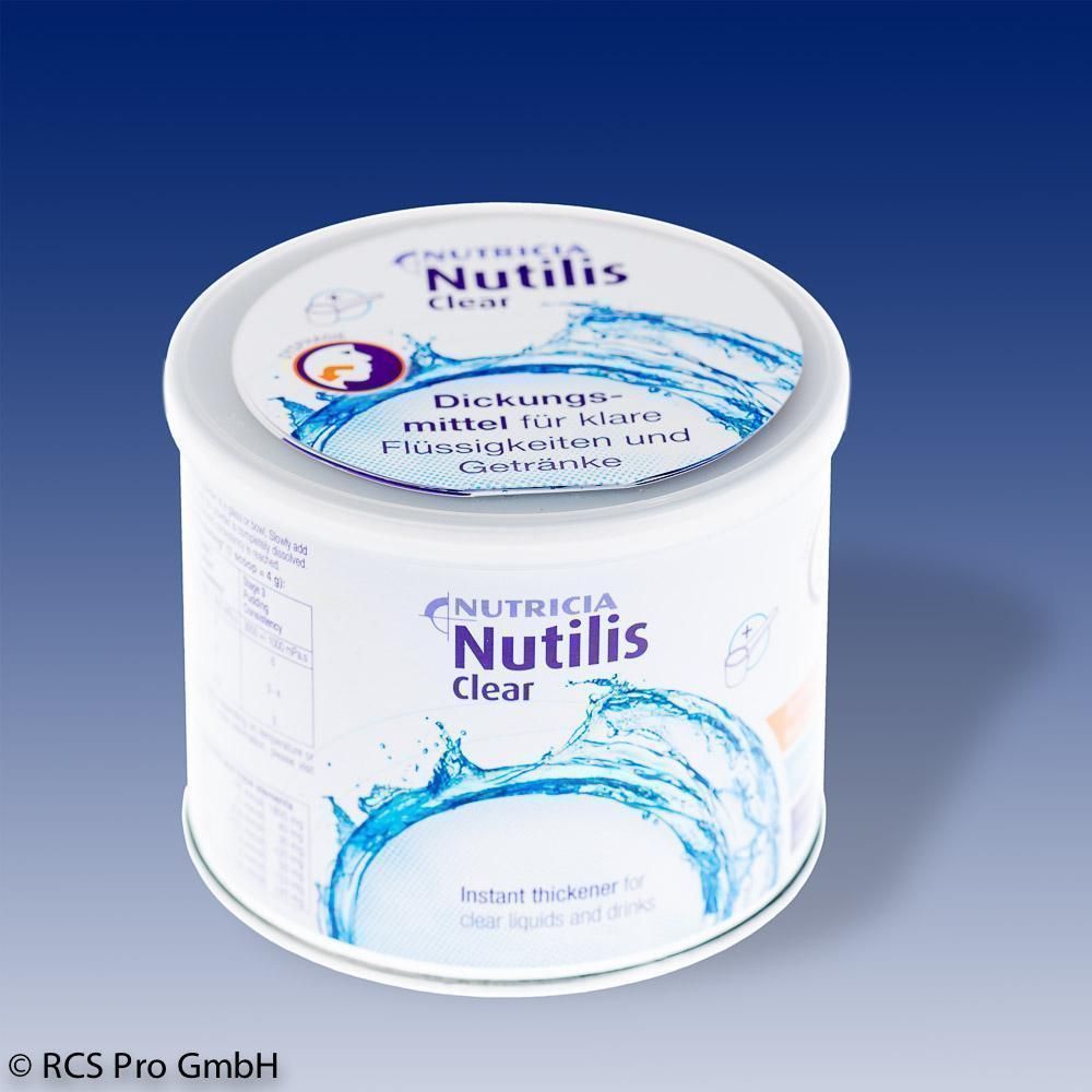 Ein besonderes Produkt ist Nutilis Clear – das transparente Andickungsmittel. Klare Flüssigkeiten wie Wasser, Tee oder Saft bleiben mit dem Produkt auch nach dem Andicken klar. Dies ist für die Akzeptanz bei Betroffenen von großer Bedeutung. Nutilis Clear ist amylaseresistent und ermöglicht ein Andicken in allen drei Konsistenzstufen. Die Dose mit 175g ist praktisch für den häuslichen Gebrauch.